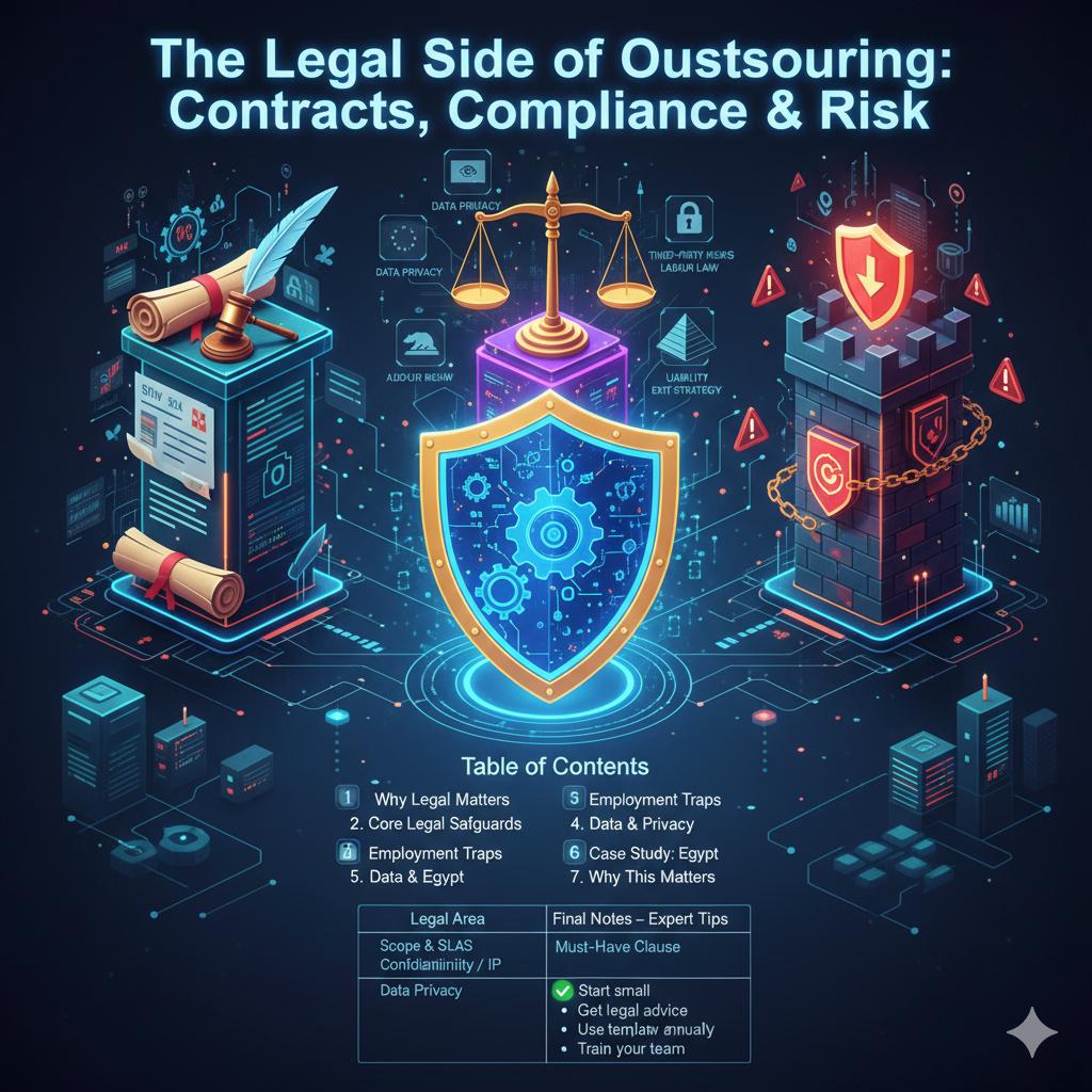 Deciding to outsource work? Smart move—but don’t overlook the legal side. As an experienced outsourcing expert, I’ve learned that contracts, compliance, and risks must be handled with care. In plain English, here’s what you need to know—no legal jargon, just clear steps to keep you safe and successful.